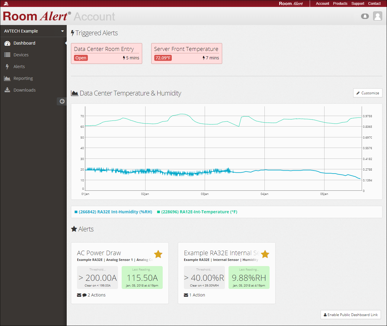 You can also create a public URL for your Dashboard to share with someone who may not have access to your Room Alert Account. For instructions, please see How To Create Public URLs In Your RoomAlert.com Account.
