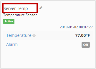 – Select the pencil icon next to the sensor’s current name. In our example, the existing name is ‘Sensor 1.’