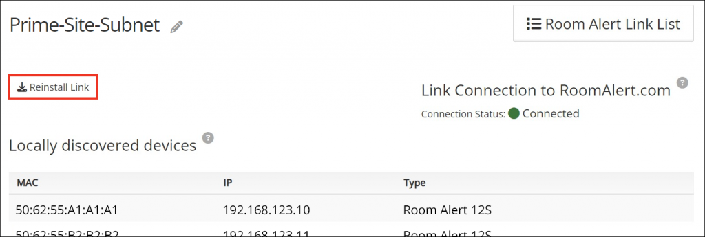 Knowledge Base / Frequently Asked Questions / Room Alert Account (RoomAlert.com) / Room Alert Link