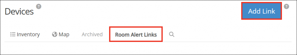 2. In the navigation bar to the left, select Devices, and go to the Room Alert Links tab.