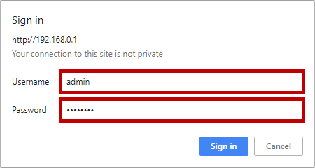 – Then enter the Room Alert 3 Wi-Fi’s default username and password to open the device’s web interface: