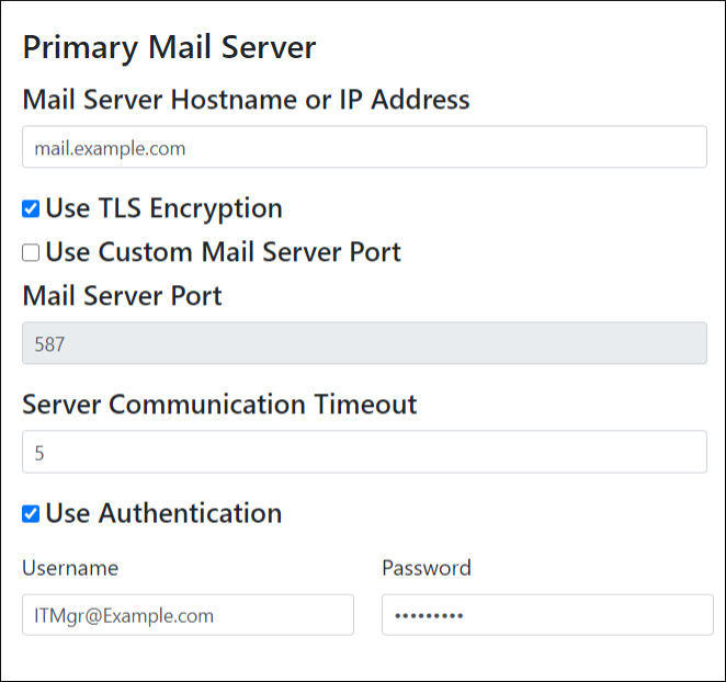 - In Mail Server Hostname or IP Address, enter the hostname or IP address of your mail server.