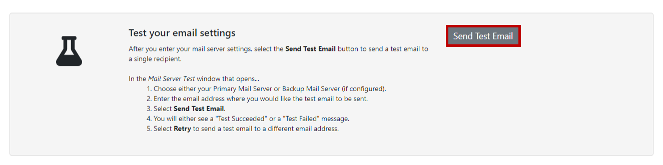Once you’ve entered all of your mail server information, it’s a good idea to send a test email to make sure you configured your settings correctly.
